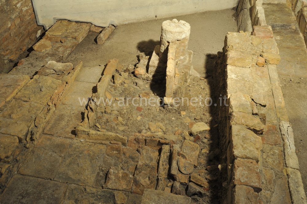 The archaeological area of the bank “FriulAdria” displays parts of a “domus” spanning between I century B.C. and III-IV century A.D. The house was located within the city walls of the Roman settlement, not far from the eastern city gate.