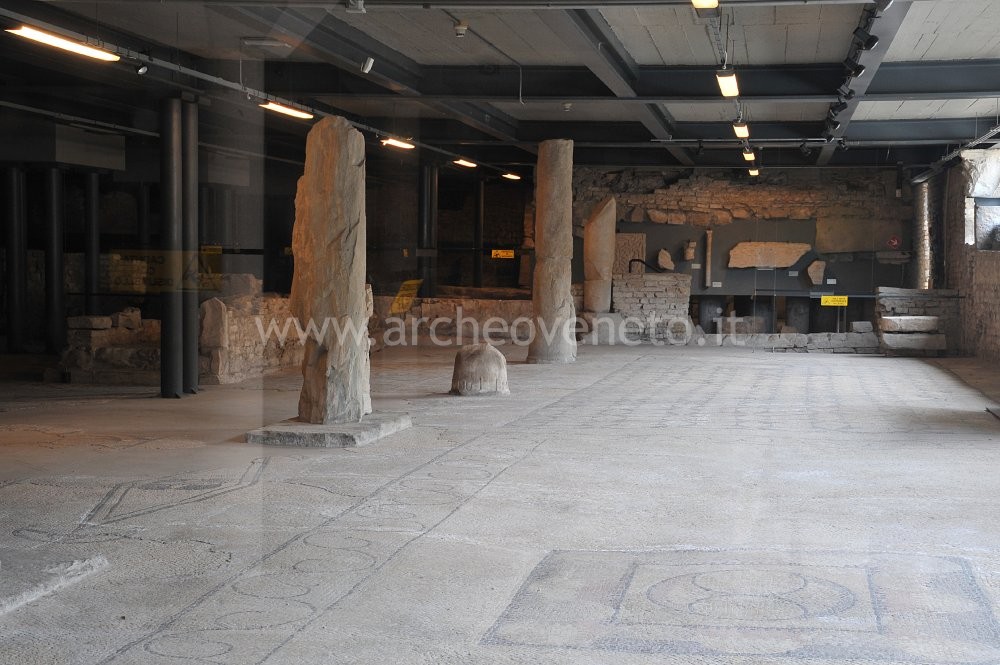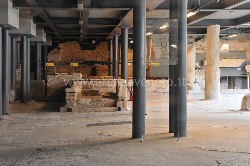 The archaeological area at the Cathedral of Concordia mainly displays the remains of the early Christian compound that was built from IV century A.D. onwards along the main east-west city road, the so-called “decumanus maximus”, in its extra-urban area. It also partially displays few aspects of the previous Roman phase of the settlement, particularly part of a road and of some commercial buildings.