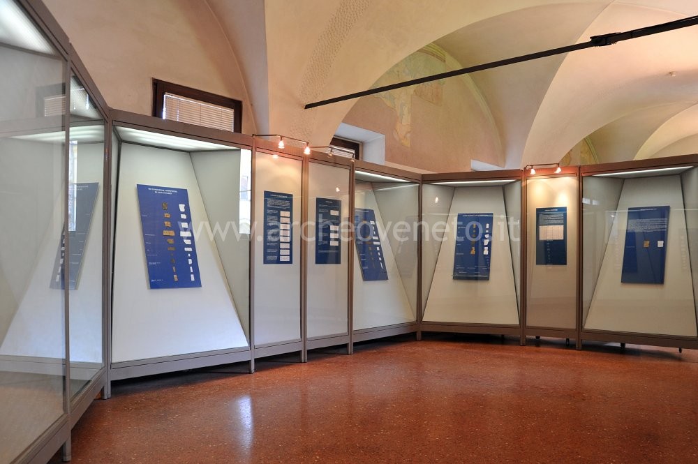 This large room overlooks the cloister-garth and contains proto-historic findings from Vicenza and its surrounding area. The first section of the room houses artefacts from an urban sanctuary, situated in the current piazzetta S. Giacomo. More than 200 artefacts in bronze were found here, bearing witness to the sacred nature of this place. Most of the bronze sheets dating back to a time span ranging from the 5th to the 2nd-1st century BC are decorated (engraved, embossed) and depict holy figures such as priests, priestesses, soldiers, initiation rites, athletic contests, anatomical ex-votos and community images. A bronze sheet with inscription (IANTS DONasto…) and alphabetical formulary (list of consonants and letters with magic-ritual value AKEO) might point to the presence of a scriptorium inside the sanctuary.