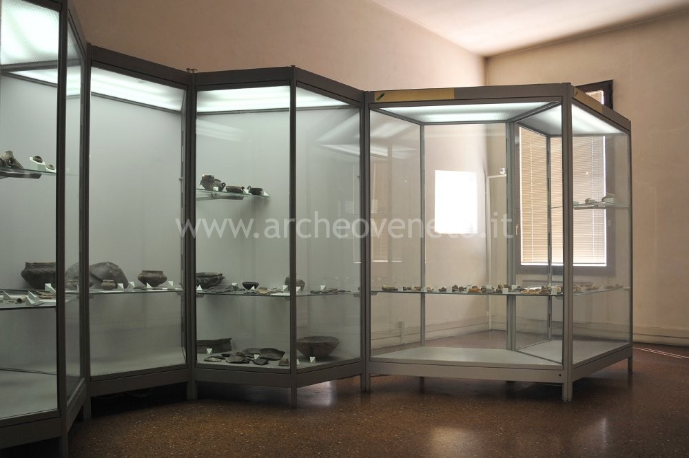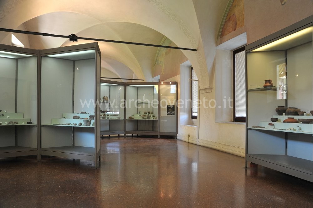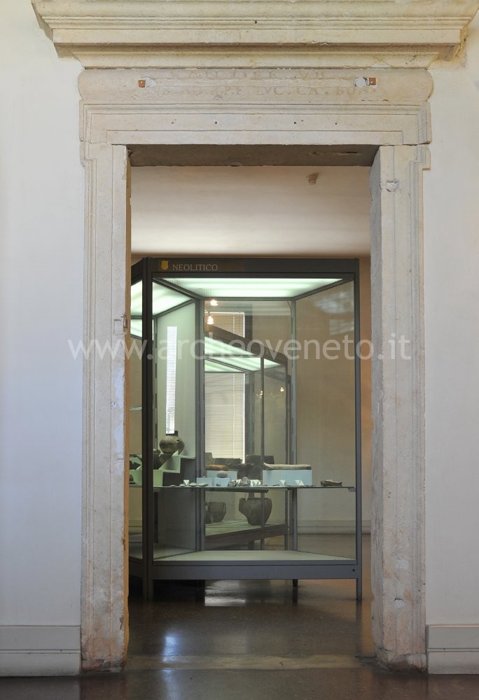 This room exhibits findings from the Late Neolithic period discovered in the area around Vicenza. Three large panels shortly introduce this period. Next to them a large display case exhibits findings from Cà Bissara di Poiana Maggiore, Valli di Fimon and Pianezze di Arcugnano in the Berici hills. In the first settlement, coarse clay pottery (truncated-conical vases and fragments of jars), fine clay pottery (carinate cups and long neck vases) and some examples of lithic industry (burins, scrapers, microburins, retouched, rhombic and trapezium-shaped blades) were found. Valli di Fimon brought to light flint tools such as burins, scrapers, retouched blades, backed points and blades. Pianezze di Arcugnano was a very thriving area in the 6th century BC, as witnessed by the large number of pottery and flint objects found in this area.