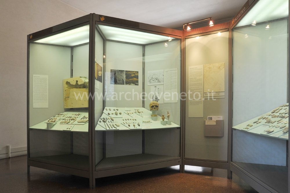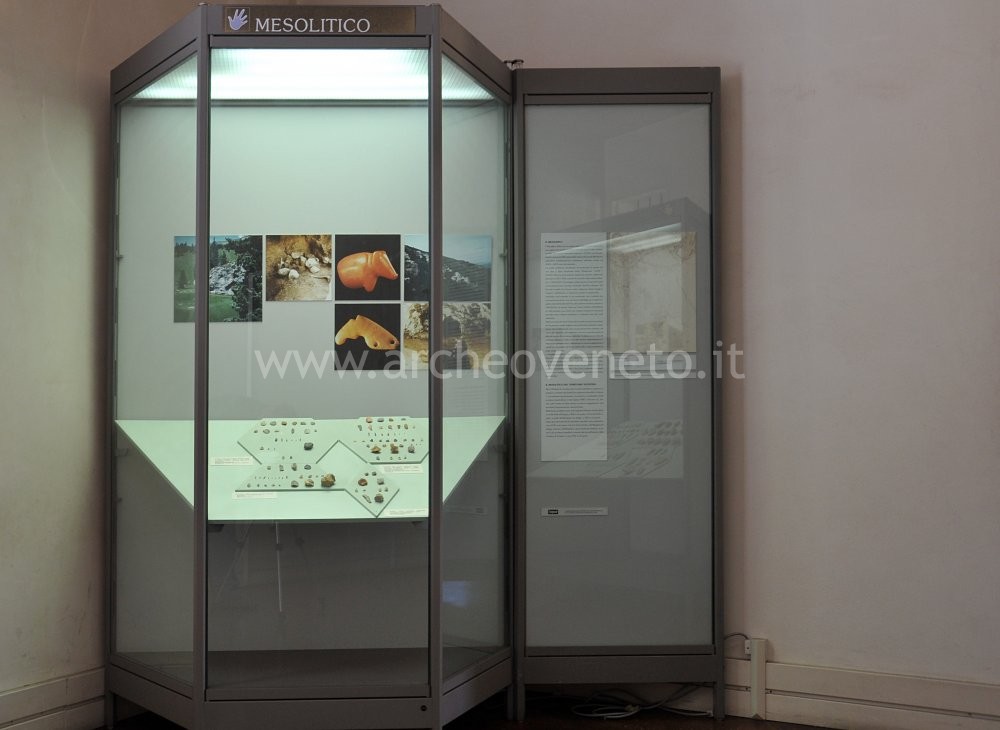 The last section of the room is dedicated to the Mesolithic period (10,000-7,000 years ago) which marked the passage to neolithization. Artefacts from this period were found in the Grottina dei Covoloni del Broion, Riparo di San Quirico and Covolo B di Lonedo.