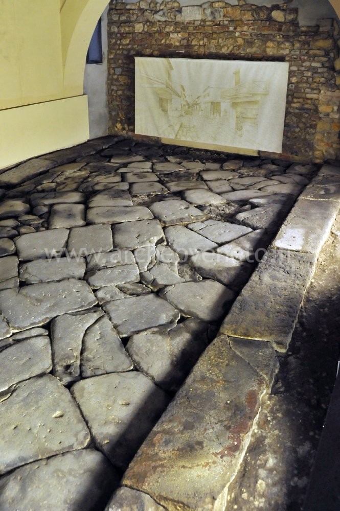 Under the Cathedral of Vicenza, there are some remains of the south-western neighbourhood of the municipium of Vicenza. The area was divided into four blocks, approximately 80 metres wide and parallel to the Decumanus Maximus, which corresponds to today’s Corso Palladio. The buildings of the Roman period discovered include the remains of walls and floors, which can be probably traced back to private houses, as well as a stretch of a paved road.