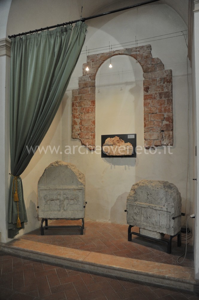 Il mondo funerario è illustrato anche da tre monumenti collocati nella cappella di sinistra della Chiesa di Santa Maria Maddalena: una stele frammentata con dedica agli Dei Mani già rimpiegata nella Chiesa della Bastia di Isola della Scala e due stele prive della parte superiore provenienti da Buttapietra (Isec. d.C.): una con la raffigurazione di due grifi in posizione araldica ai lati di un'urna ed una con la raffigurazione di alcuni oggetti (calamaio, volumina, scrinium) che sembrano alludere all'attività di un magistrato municipale.