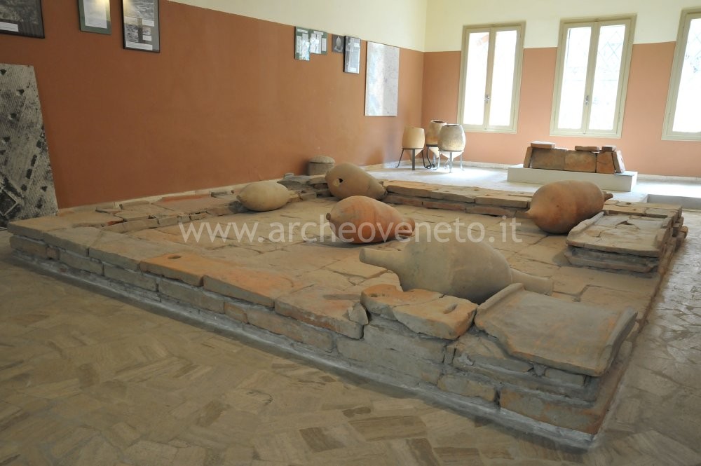 La sezione archeologica è attualmente in fase di riallestimento. Al momento la collezione presente nelle tre sale espositive è composta da otto epigrafi romane provenienti dal territorio (quattro stele funerarie, un peso da torchio, due are e un monumento a dado), una tubatura da acquedotto romano, un mosaico bicromo e e un pavimento a mattoni, questi ultimi provenienti dagli scavi di una villa urbano-rustica presso Villa Bartolomea. Nel cortile sono inoltre esposti due pozzi romani rinvenuti nelle Valli Grandi Veronesi e qui ricostruiti con materiali originali.
