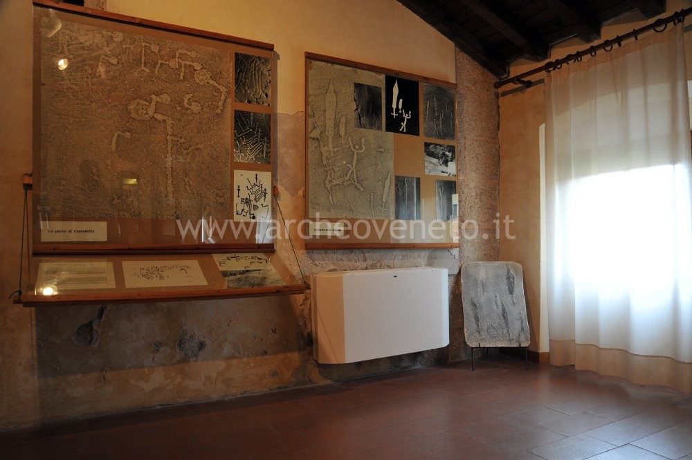 Il percorso espositivo di questa sala, riguardante l’arte di incidere o disegnare sulle pareti rocciose delle montagne, inizia con un pannello introduttivo che illustra le aree di maggior concentrazione delle testimonianze di arte rupestre lungo le sponde orientali del lago di Garda. Il pannello è affiancato da alcune riprese fotografiche che ritraggono il ritrovamento delle incisioni.