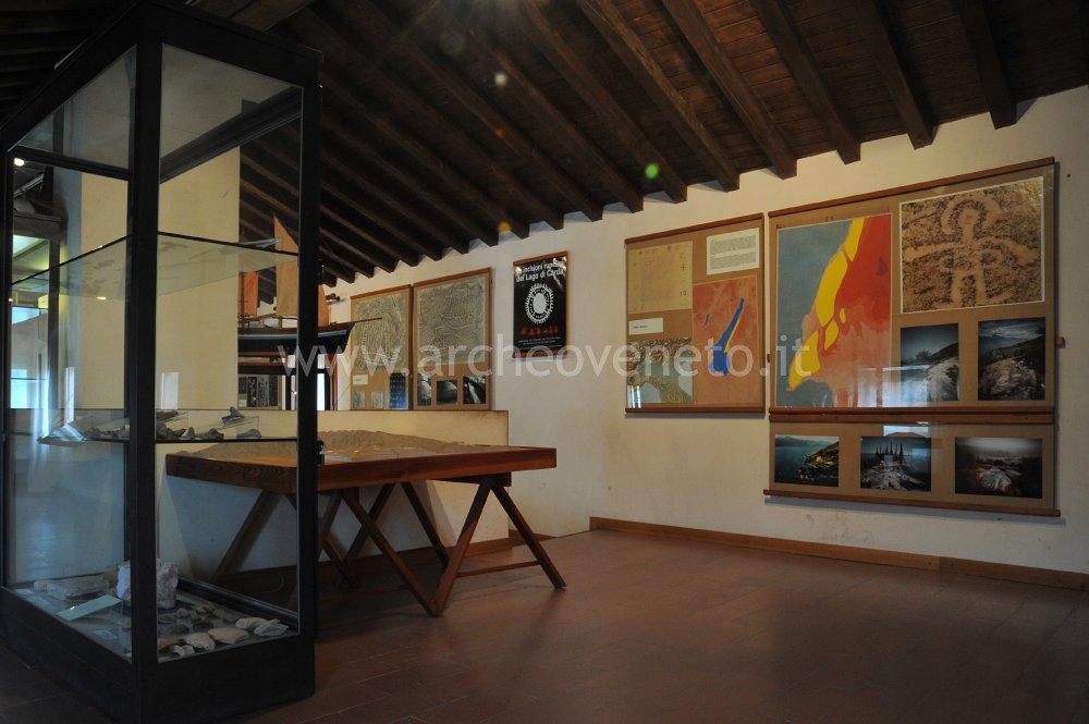 Il ripiano più alto della prima vetrina è dedicato all’industria litica preistorica di Torri del Benaco: nuclei di selce, lamelle, raschiatoi, perforatori, cuspidi di freccia ed elementi di falcetto. Il secondo ripiano raccoglie le evidenze ceramiche, comprese tra Eneolitico e Bronzo Antico, scoperte presso Torri del Benaco; tra queste ricordiamo un frammento di poppatoio, due frammenti di parete con fori tracimatori, fusarole, anse e frammenti di vasi con decorazioni a bugnette. L’ultimo ripiano presenta reperti di età romana ritrovati nella zona di sant’Antonio; tra questi si segnala un frammento lapideo con raffigurazione di Giano Bifronte.