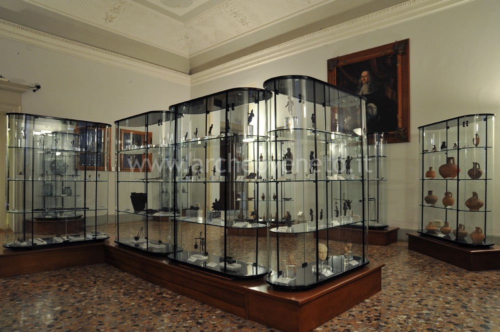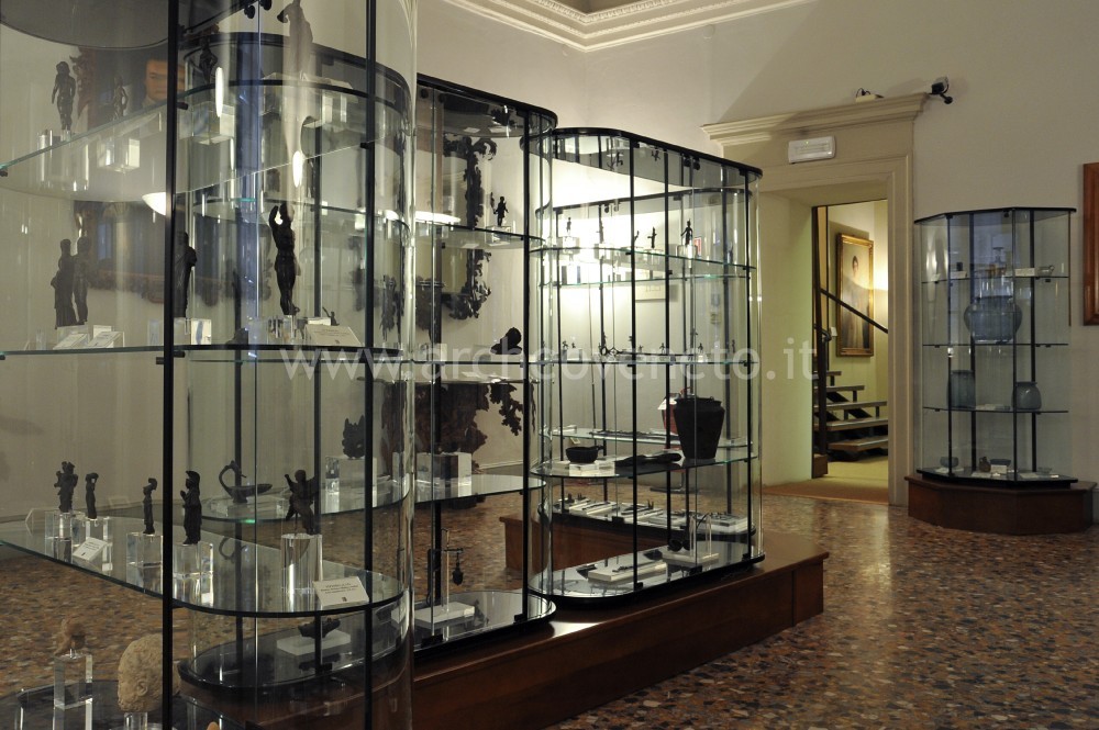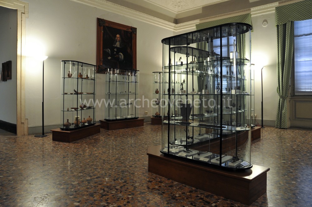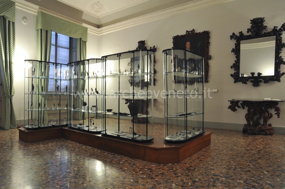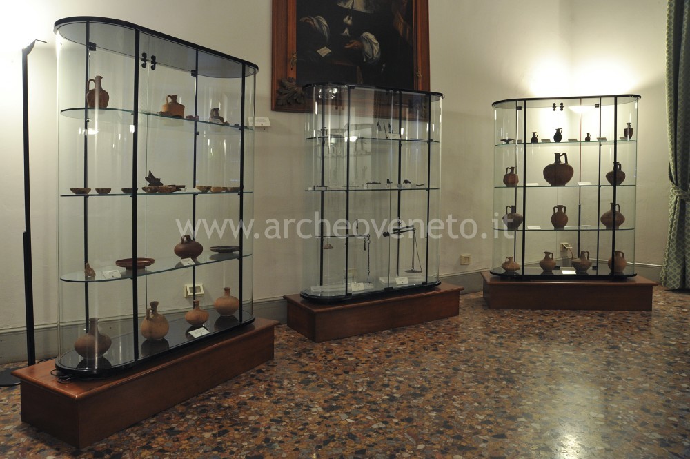 La prima vetrina raccoglie una serie di bronzetti raffiguranti Ercole e guerrieri in assalto, tipica espressione della cultura artistica veneta a cavallo tra il V e il IV sec. a.C. Oltre a questi sono presenti anche una maglia da guerra in ferro del V sec. a.C., alcuni utensili domestici in ferro del II-I sec. a.C. e una coppia di anelli da pugno con punte in bronzo del I-II sec. d.C.