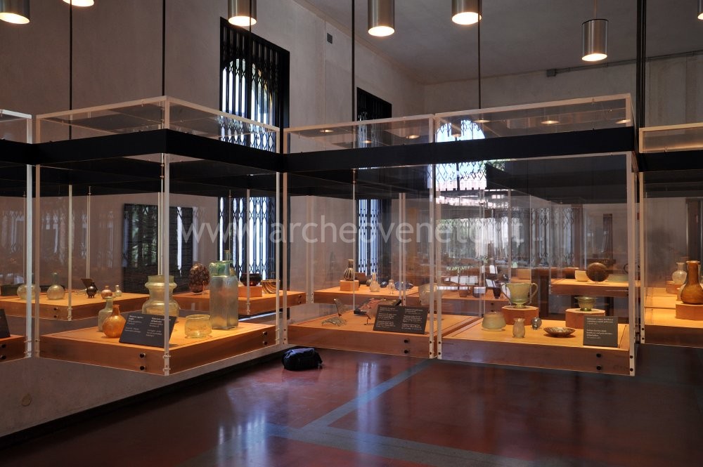 Il Museo del Vetro di Murano propone al visitatore un’appassionante esposizione tematica incentrata sui prodotti e sulle tecniche dell’arte vetraria tra il Quattrocento e il Novecento. Come anticipazione degli straordinari risultati raggiunti negli ultimi secoli, la prima sezione del museo offre uno spaccato esaustivo dell’altissimo grado qualitativo che contraddistingue le produzioni vetrarie in epoca romana, grazie ad una serie di vetrine ricche di materiali integri e ben valorizzati, che coprono un arco di tempo compreso tra l’inizio dell’età imperiale e la tarda antichità. La maggior parte dei materiali esposti è costituita da reperti provenienti dalle necropoli delle antiche città di Iader (Zara) e Aenona (Nona) in Dalmazia.