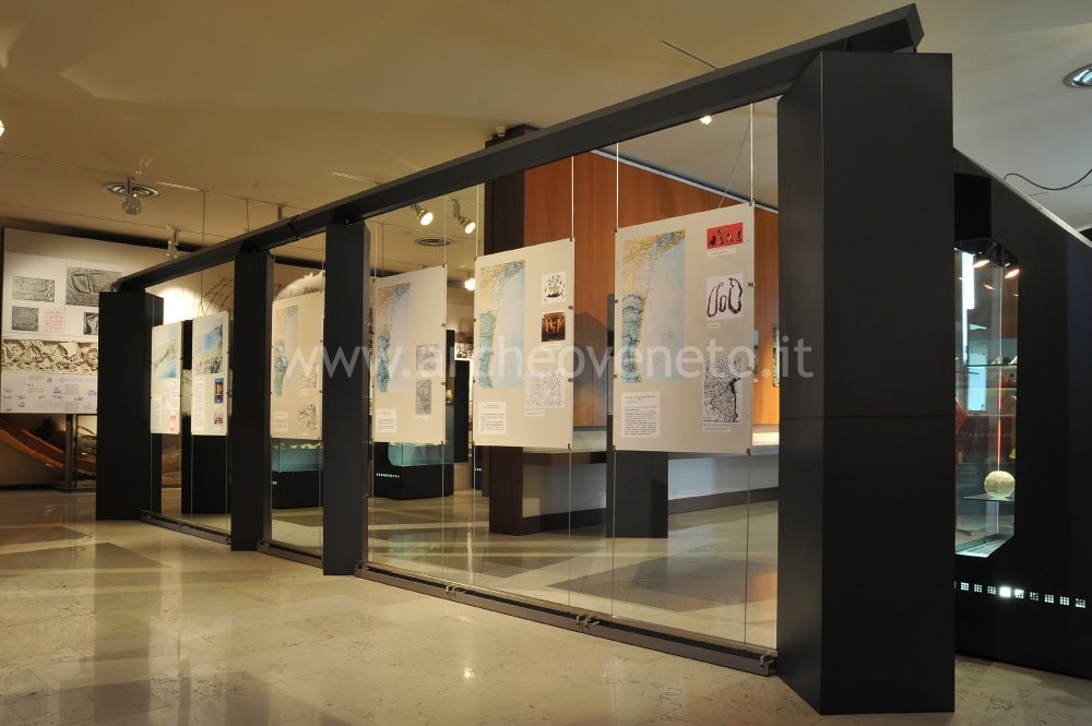 Il percorso museale ha inizio con una serie di pannelli, affissi alla parte destra della sala, riguardanti l’evoluzione ambientale del litorale adriatico (e le variazioni della linea di costa) dalla fine dell’età del Bronzo (X sec. a.C.) al 1740. Gli altri temi trattati interessano gli insediamenti, i commerci, la suddivisione agraria e la viabilità nell’alto Adriatico in epoca preromana e romana.