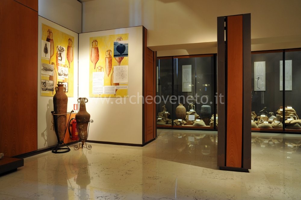 Il terzo ambiente della sala, costituito da una saletta posta sul fondo, è allestito con i contenitori commerciali per eccellenza dell’antichità, ossia le anfore, qui esposte all’interno di una grande vetrina. L’esposizione è corredata da pannelli che illustrano le forme di questo genere di contenitore, le modalità di produzione, le importanti informazioni che esso può offrire e le sue diverse tipologie. La grande vetrina raccoglie una variegata rassegna di anfore, ritrovate nel tratto di mare tra Sottomarina e il Lido, appartenenti ad un ampio arco cronologico (dall’età repubblicana al VI sec. d.C.): anfore greco-italiche, anfore tipo "Lamboglia 2", anfore tipo "Dressel 2/4", anfore “ad alto orlo ad imbuto”, anfore di produzione egea, anfore di produzione nord-italica, anfore tipo "Mid Roman 8", uno spatheion dalla Tunisia e anfore tipo "Late Roman 1".