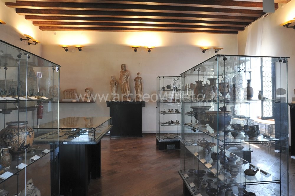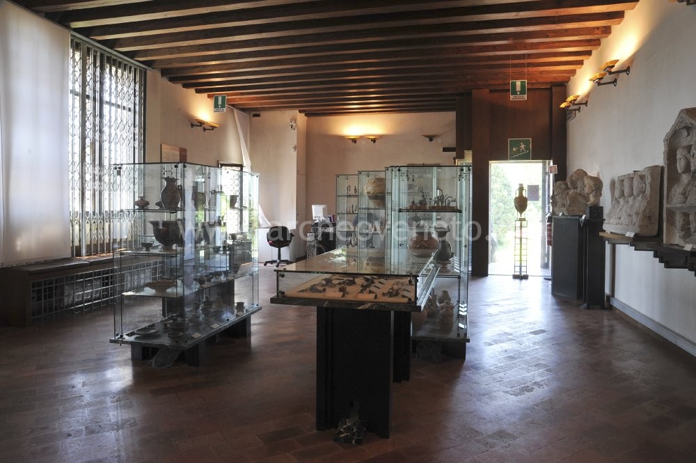 L’unica sala museale, al primo piano del Palazzo dell’Archivio, è in realtà uno scrigno che custodisce importantissime testimonianze della cultura artistica greca, etrusca e romana. La loro straordinaria rilevanza risiede da un lato nel fatto che gli oggetti che compongono la collezione appaiono quasi tutti pressoché integri (caratteristica particolarmente evidente nel caso dei vasi ceramici), dall’altro nell’essere stati rinvenuti in una certa misura (anche se con molte incertezze) nell’area lagunare o nell’immediato retroterra altinate. E’ questo ad esempio il caso dei quattro fondamentali vasi micenei (1400-1200 a.C.), di rinvenimento quasi sicuramente lagunare, esposti nel terzo ripiano della prima vetrina accanto a due vasi ciprioti ancora più antichi (1700-1600 a.C.), a probabile testimonianza dei remoti contatti marittimi esistenti tra il Mediterraneo orientale e l’alto Adriatico. Nella stessa vetrina si trovano anche due ripiani con statuette egizie in bronzo e in ceramica, un ripiano con vasi ceramici di varia provenienza (ionica, ionico-etrusca, egizia e greco-orientale), datati tra la metà del VI e il V sec. a.C., e un ultimo ripiano dedicato prevalentemente alle produzioni preistoriche, con armi e strumenti in bronzo, due asce di pietra lavorata, due corna di cervo lavorate e tre nuclei di lavorazione in selce.