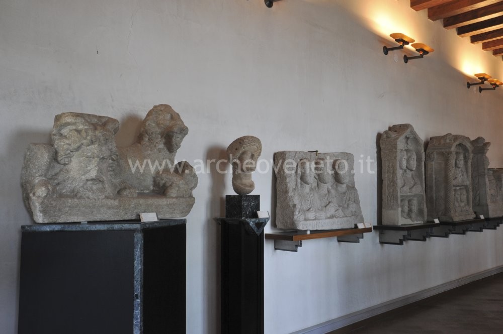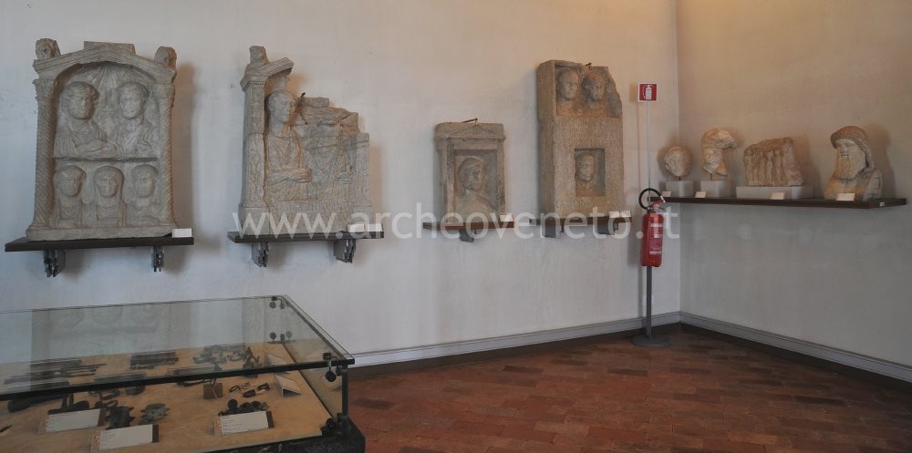 Lungo le pareti della sala sono collocate alcune importanti testimonianze scultoree, almeno in parte di provenienza altinate. Sulla parete di sinistra si possono osservare una sfinge, originariamente a coronamento di una stele funeraria (prima metà del I sec. d.C.); un coronamento funerario raffigurante un leone; un ritratto femminile in marmo (I sec. d.C.); sei stele funerarie, alcune delle quali appartenenti alla caratteristica tipologia “a pseudoedicola”, con i ritratti dei defunti disposti su un doppio registro (I-II sec. d.C.). Sulla parete di fondo sono disposti alcuni splendidi esempi di sculture e di rilievi di età greca e romana. Tra questi possiamo ricordare una testa femminile da una stele funeraria greca (V sec. a.C.), un rilievo votivo greco (fine IV-III sec. a.C.), una testa maschile velata raffigurante forse Kronos (fine IV-III sec. a.C.), un rilievo funerario o votivo tardo ellenistico, una statua di Asclepio con testa di Serapide (I-II sec. d.C.), un’erma di Hermes Propylaios (inizi del II sec. d.C.) e altre sculture di età romana. Sulla parete di destra si possono ammirare quattro ritratti di età romana, nonché, all’interno di due teche, alcuni frammenti di intonaci dipinti (I sec. d.C.) e una prestigiosa raccolta di gemme e cammei romani di possibile origine altinate. Infine, a lato della porta di ingresso è appesa una lastra con rilievo di Attis datato all’età imperiale avanzata.