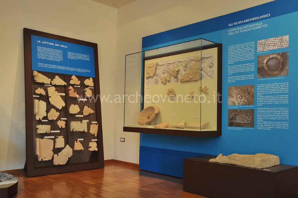 Nella parte centrale della sala è esposto un pozzo e i reperti raccolti durante lo scavo dell’officina artigianale dell’ex Fondo Mometto (I sec. d.C.); questi consistono in frammenti di terracotte architettoniche (lastre decorate e antefisse), frammenti di tegole bollate, un grande mortaio in ceramica con foro e una vasca in terracotta.