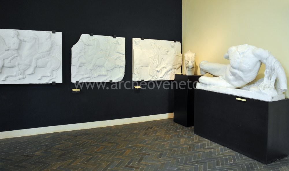 Appena entrati in questa sala si ha una raccolta di campioni di marmi, donati recentemente dal prof. Lazzarini, affiancati da una raccolta di gessi di ambito minoico. Al centro della sala spicca l’area dell’impluvio, nel cui colonnato sono disposti i calchi maggiori della collezione. A questo richiamo di architettura classica va aggiunto l’emiciclo, che spesso funge da sfondo alle conferenze tenute presso il museo, che racchiude un imponente gesso dell’Hermes di Prassitele. La collezione continua con l’esposizione di calchi di opere del Partenone (V sec. a.C.), di altre sculture greche di età classica (V-IV sec. a.C.), di opere ellenistiche di scuola pergamena (II sec. a.C.) e di età romana.