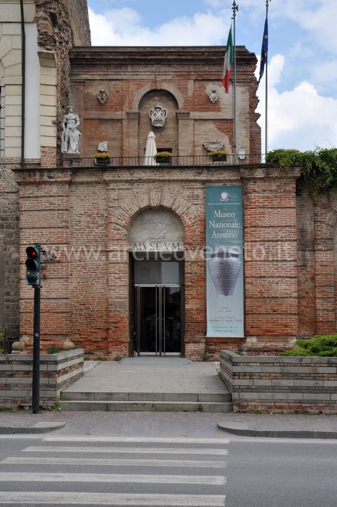 Il Museo Nazionale Atestino si trova dal 1902 nel Palazzo Mocenigo (fine XVI secolo), il quale ingloba nella facciata un tratto della cinta muraria del trecentesco castello dei Carraresi. Al suo interno le sale, denominate con i numeri romani I-XI e allestite secondo un ordine cronologico, ci introducono alla conoscenza delle varie civiltà che si succedettero nel centro di Este e nel territorio circostante, dalle età più antiche all’epoca romana e oltre, nel Medioevo e nel Rinascimento. Il percorso di visita ha inizio nella Sala I, al piano nobile del palazzo, dedicata alle raccolte preistoriche, dal Paleolitico alla fine dell’età del Bronzo; le altre sale (II-V) sono dedicate al centro veneto di Este (X-III sec. a.C.) di cui sono presentati, con una suddivisone a tema, gli abitati, le necropoli e i santuari. Al piano terra sono esposte, nelle sale VI-X, le testimonianze del centro romano di Ateste connesse alla vita pubblica e a quella privata, ai culti e agli aspetti funerari. Nell’ultima sala sono raccolti alcuni monumenti medioevali e rinascimentali e una ricca collezione di ceramiche.