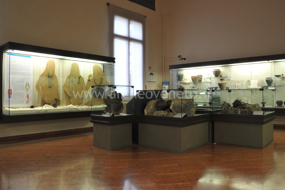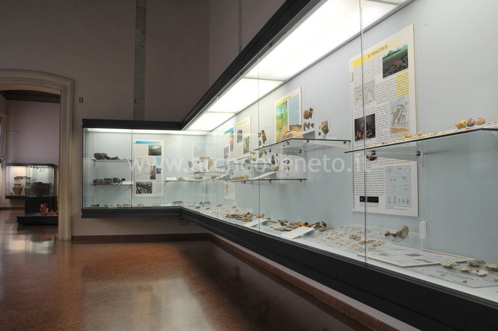 Questa sala, al piano nobile del palazzo, è dedicata alle raccolte preistoriche. Manufatti in selce testimoniano la più antica frequentazione del versante occidentale dei Colli Euganei durante il Paleolitico, mentre nel Mesolitico la presenza umana si attesta in località Valcalaona (Baone) e Malandrina (Lozzo Atestino). Notevoli sono le testimonianze per il Neolitico. Ai nuclei da Le Basse di Valcalaona del Neolitico antico (Cultura di Fiorano) e recente (Cultura dei vasi a bocca quadrata, stile a “incisioni e impressioni”) seguono quelli del Neolitico medio di Maserà. Nella stessa grande vetrina sono esposti pure i materiali dell’abitato di Castelnuovo di Teolo riferibili agli aspetti finali della Cultura dei vasi a bocca quadrata e all’età del Rame. L’Eneolitico viene esemplificato da singoli reperti da Este e da manufatti ceramici d’abitato da Este-località Meggiaro. La fase di transizione tra età del Rame ed età del Bronzo è documentata dal vasellame ceramico domestico da Este-Ca’ Mori.