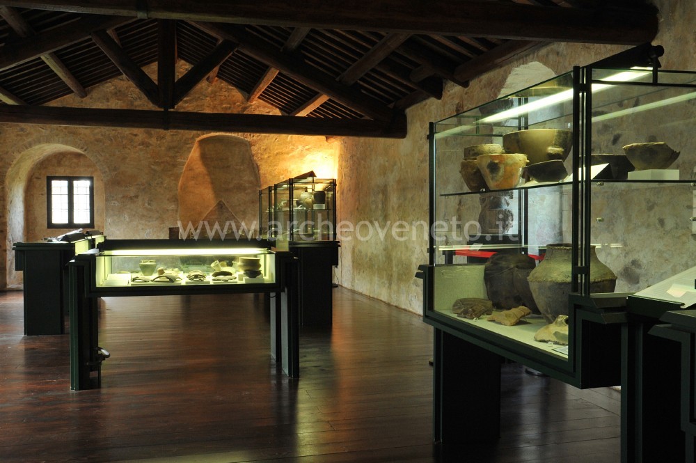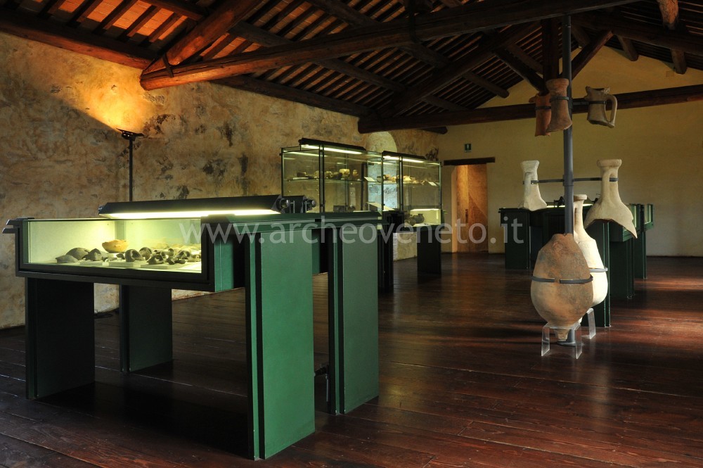 L’ultima parte della sezione archeologica è dedicata all’età romana, a cui sono riferibili manufatti di uso domestico (olle, patere, pesi da telaio, un balsamario, una moneta bronzea di Traiano), materiale edilizio (antefissa con gorgone, tessere bianche di mosaico, mattone con incisa una tria, una tegola con alette con bollo Servilia) e contenitori da trasporto (anfore olearie e vinarie). La provenienza di questo materiale è da mettere in relazione con un tipo di insediamento sparso, legato allo sfruttamento del territorio da parte di agricoltori e all’installazione di ville rustiche lungo le direttrici stradali che portavano a Patavium.