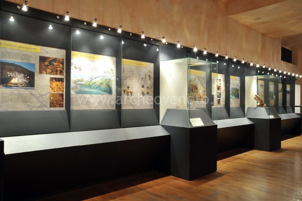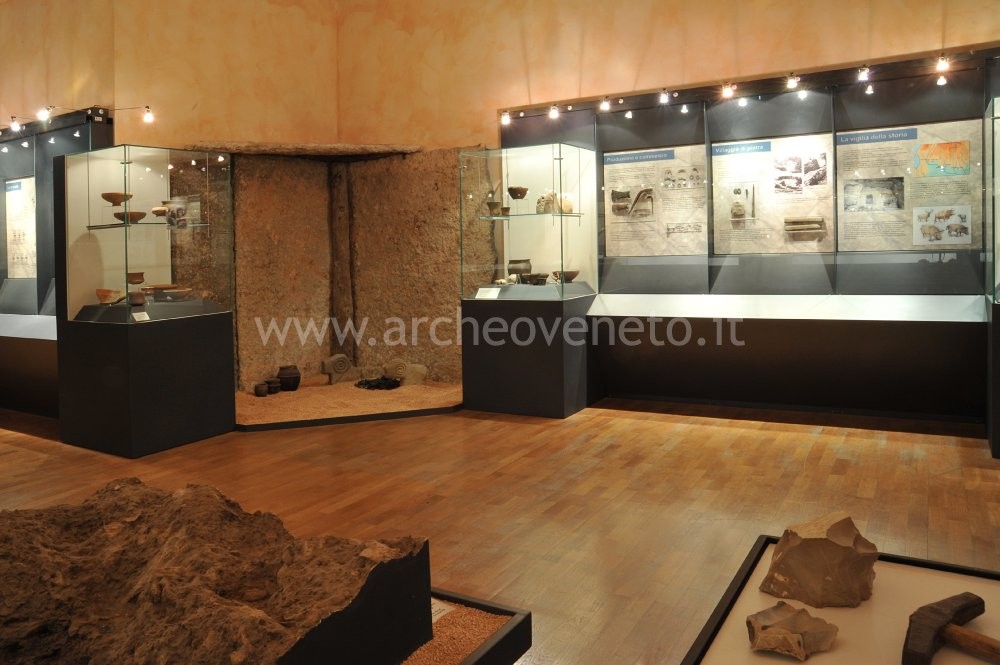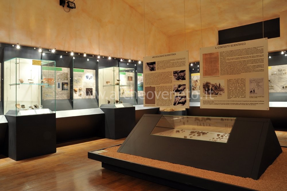 La sezione preistorica del museo inizia con la presentazione del primo popolamento della Lessina a partire dal Paleolitico Inferiore (300.000-120.000 anni fa). A questo periodo, scarsamente conosciuto, risale un bifacciale in selce rinvenuto a Cà Palui. Le vetrine successive sono dedicate al Paleolitico Medio (120.000-36.000 anni fa) e alle testimonianze archeologiche di questo periodo ritrovate nei Monti Lessini e soprattutto presso la Grotta di Fumane. Tale riparo, conosciuto già dall’800, conserva una straordinaria successione stratigrafica, che fornisce importanti informazioni circa le oscillazioni ambientali della Lessinia e l’evoluzione umana. Al primo periodo, popolato dall’Homo Neanderthalensis, appartengono la scheggia "Levallois", i due raschiatoi e il cranio di stambecco (forse un trofeo di caccia) rinvenuti all’interno della grotta ed esposti in una vetrina. Il secondo periodo (Paleolitico Superiore, da 36.000 a 10.000 anni fa), contraddistinto dalla comparsa dell’Homo Sapiens Sapiens, è caratterizzato dalla lavorazione sistematica dell’osso e del corno per ottenere oggetti ornamentali (zagaglie, strumenti in osso, costa di erbivoro con tacche e conchiglie marine forate) e da un’industria litica definita "Aurignaziana" (punte con frattura d’impatto, punte e lamelle a ritocco erto marginale, grattatoi e bulini a lame ritoccate e nuclei a lamelle).