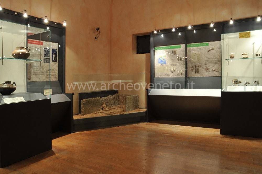Con l’inizio dell’età del Ferro (I millennio a.C.) il popolamento dei Monti Lessini si consolidò e si stabilizzò in abitati posti sulla sommità delle alture; le abitazioni di questa fase erano seminterrate e con pareti costituite da lastre in calcare (“villaggi di pietra”). Gli insediamenti più significativi sono quelli di San Giorgio di Valpolicella, Castelrotto, Monte Loffa e Castel Sottosengia. L’abitato di Monte Loffa ha restituito olle, boccali, ciotole, fusarole in pietra, attrezzi metallici di uso quotidiano (piccone, asce, roncola, coltelli), oggetti d’ornamento di tradizione sia veneta (fibule, anellini, spilloni, bracciali e pendagli) sia celtica (bracciali, perle in pasta vitrea e fibule). Da Sottosengia provengono pesi da telaio, una fibbia di cintura, una cuspide, una punta di lancia, coti per affilare, un’oletta ovoidale, boccali e pesi da telaio. L’insediamento protostorico di Castelrotto è noto per la sua posizione geografica, prospiciente al fiume Adige, che ne ha fatto un villaggio al centro di scambi tra gli abitati veneti della pianura, gli insediamenti etruschi del Mantovano e le comunità delle colline e dei Monti Lessini. All’interno della relativa vetrina sono conservati alcuni reperti ceramici, che consistono in ciotole di varie dimensioni, un’olletta, una grattugia e boccali.