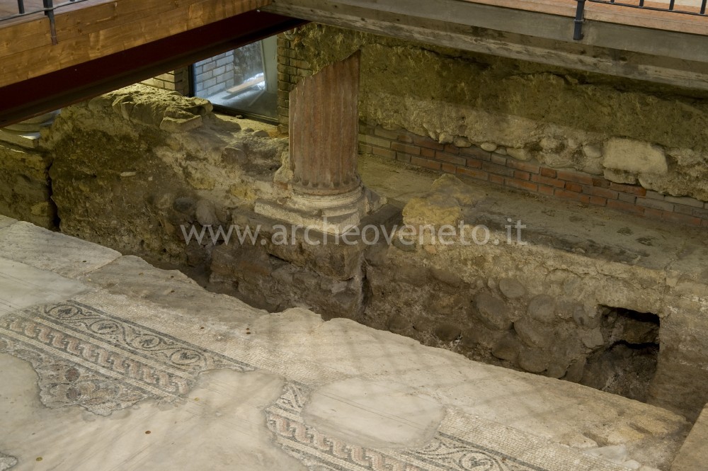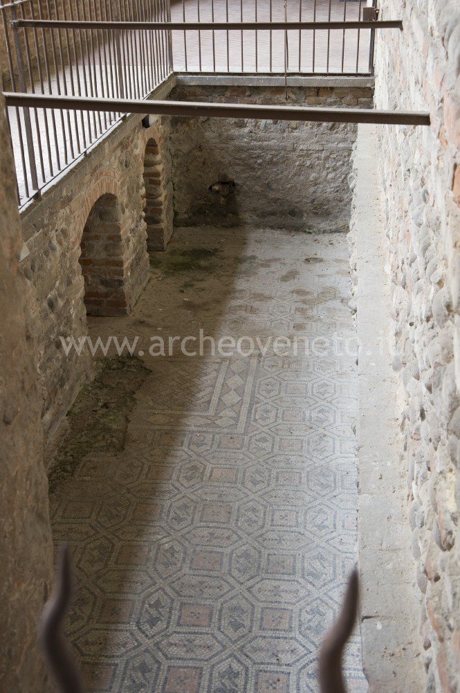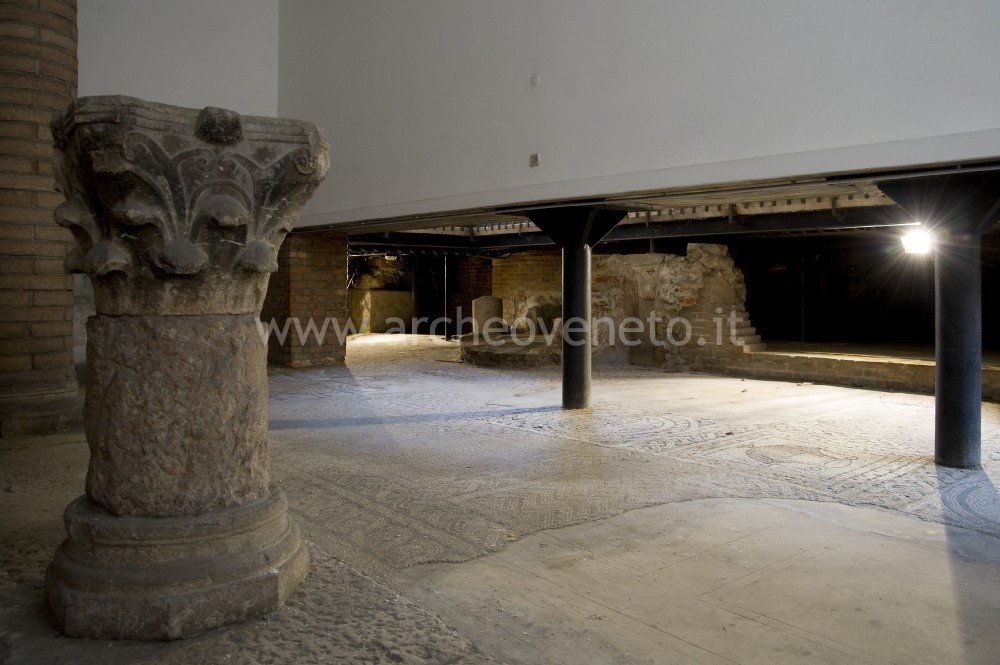 I resti conservati all’interno dell’area archeologica oggetto di questa visita costituiscono la testimonianza più antica del complesso episcopale di Verona, che risale al IV secolo. La chiesa più antica, denominata convenzionalmente “Chiesa A” fu rinvenuta a nordovest dell’odierna Cattedrale, sotto la chiesa o collegiata di Sant'Elena. Essa venne edificata su un precedente edificio privato romano verso la metà del IV secolo e venne poi rimaneggiata nella seconda metà del medesimo secolo. Quanto visibile oggi appartiene alla ristrutturazione della seconda metà del IV secolo. Si trattava di un ambiente monoabsidato, suddiviso in tre navate da colonne forse alternate a pilastri. Dei pavimenti, rivestiti da mosaici policromi geometrici, è visibile quello dell’area presbiteriale con podio quadrangolare rialzato di 30 centimetri e riscaldato a pavimento (in pianta: A). Nel mosaico, una treccia definisce quattro quadranti e un cerchio nella parte centrale dove si trovava una iscrizione in tessere nere. Altre iscrizioni furono rinvenute nei mosaici della navata nordoccidentale, oggi conservati sotto le abitazioni dei canonici, e ricordano i nomi dei devoti che fecero dono del pavimento a mosaico.