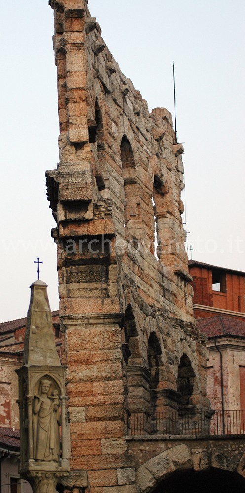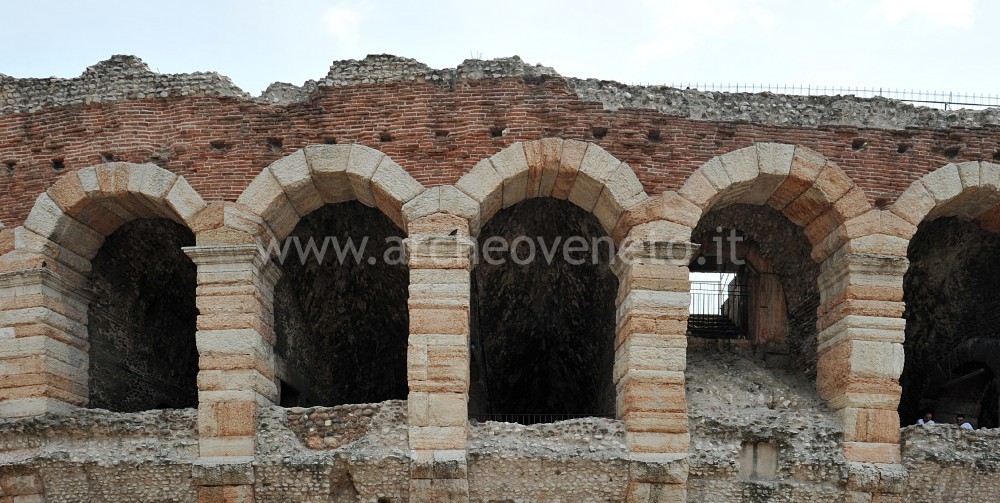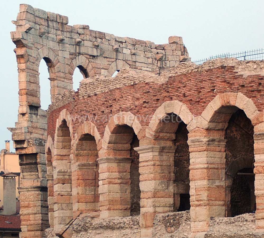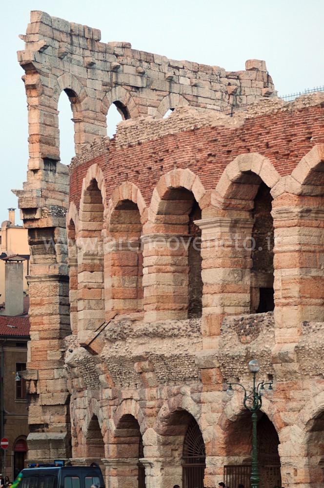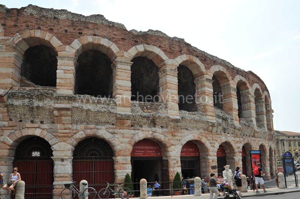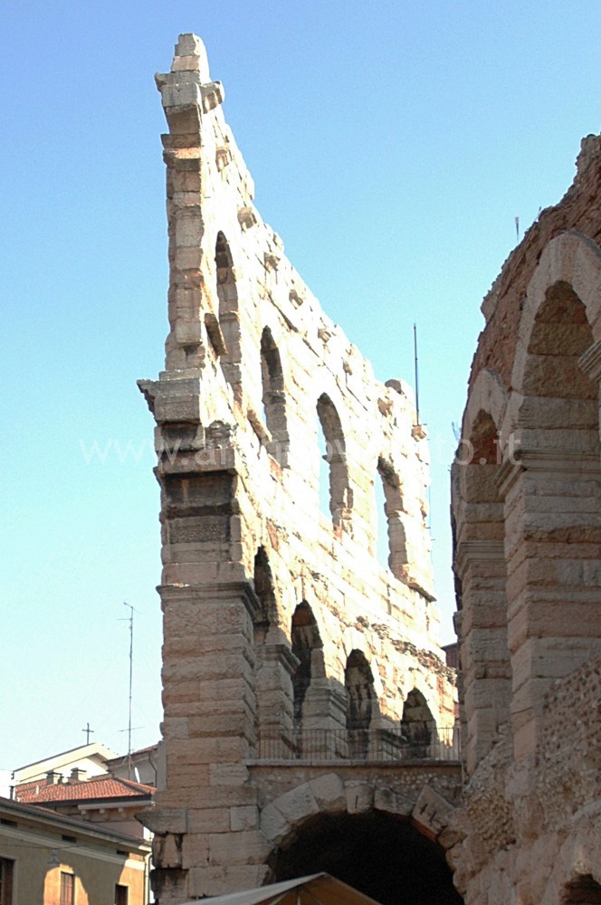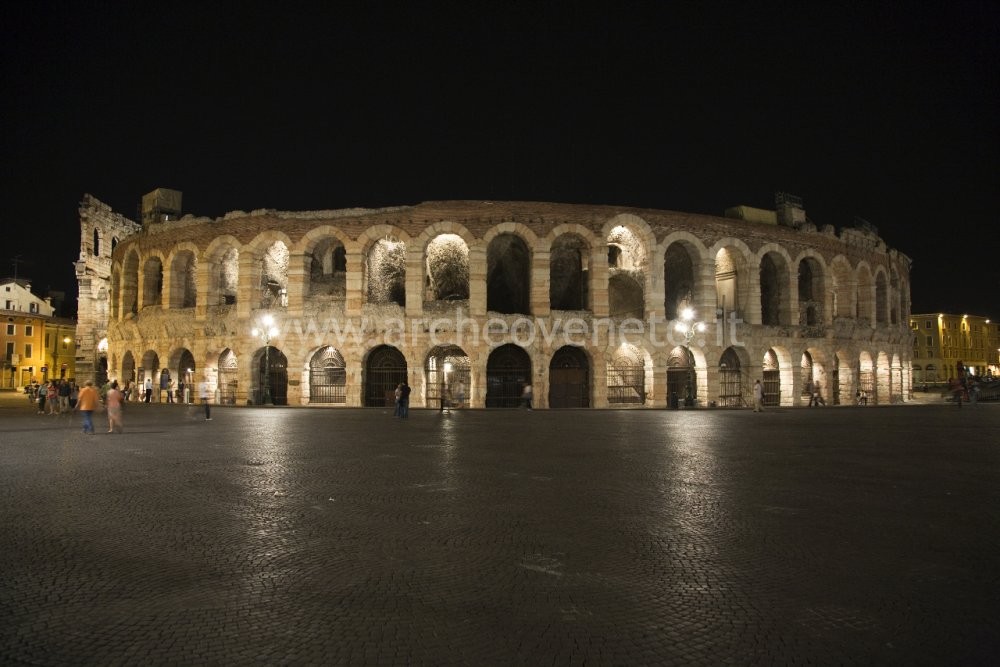 L’edificio romano che domina piazza Bra è uno degli anfiteatri meglio conservati e più grandi del mondo romano, sede oggi di manifestazioni di vario genere. Ha pianta ellittica di circa 152 x 123 m e si conserva oggi per parte dell’anello esterno e della cavea.