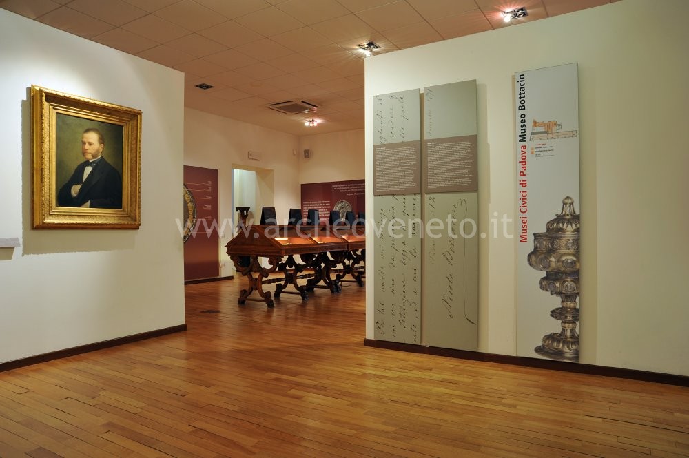 La stanza che funge da ingresso al museo ha il compito di presentare la figura del donatore, Nicola Bottacin. Accanto alla descrizione della vita del facoltoso commerciante si possono ammirare un busto e un suo ritratto, realizzato nel 1896. Il percorso espositivo continua articolandosi in due differenti itinerari, uno dedicato alle opere d’arte e l’altro alla numismatica.