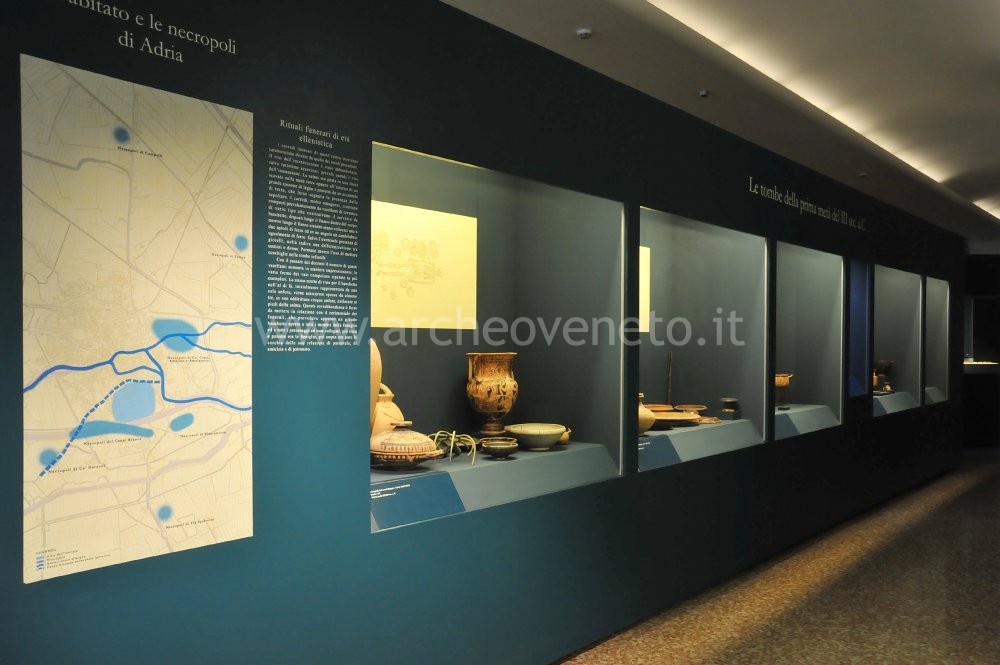 Il Museo Archeologico Nazionale di Adria raccoglie le testimonianze che provengono da Adria e dal Basso Polesine, territori che hanno rappresentato nell'antichità lo snodo dei rapporti tra il mondo mediterraneo, l'Italia Settentrionale e la cultura centro europea. Il nucleo fondamentale dei reperti si deve alla collezione Bocchi, costituita tra il ’700 e l’800; tra i materiali più considerevoli alcuni pregevoli bronzi, una ricca collezione di ceramiche attiche a figure nere e a figure rosse, opera dei più famosi pittori e, per l'epoca romana, una straordinaria collezione di vetri.