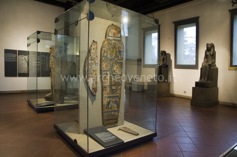 In questa sala sono raccolti alcuni reperti egizi di area tebana e menfita, provenienti da diverse collezioni private. Tra queste va segnalato l’importante lascito che il patavino Gian Battista Belzoni fece al museo, consistente in due statue in diorite della dea leontocefala Sekhmet da Karnak. Al centro della sala sono posizionate due vetrine contenenti una cassa di mummia antropoide di Meres-Imen (600 sec. a.C.), un modello di sarcofago bivalve a testa di sparviero e un fondo di cassa di mummia. Sulla parete di sinistra è esposto inoltre il papiro iscritto e dipinto del libro dei morti di Horo (età tarda), con scena di pesatura delle anime.