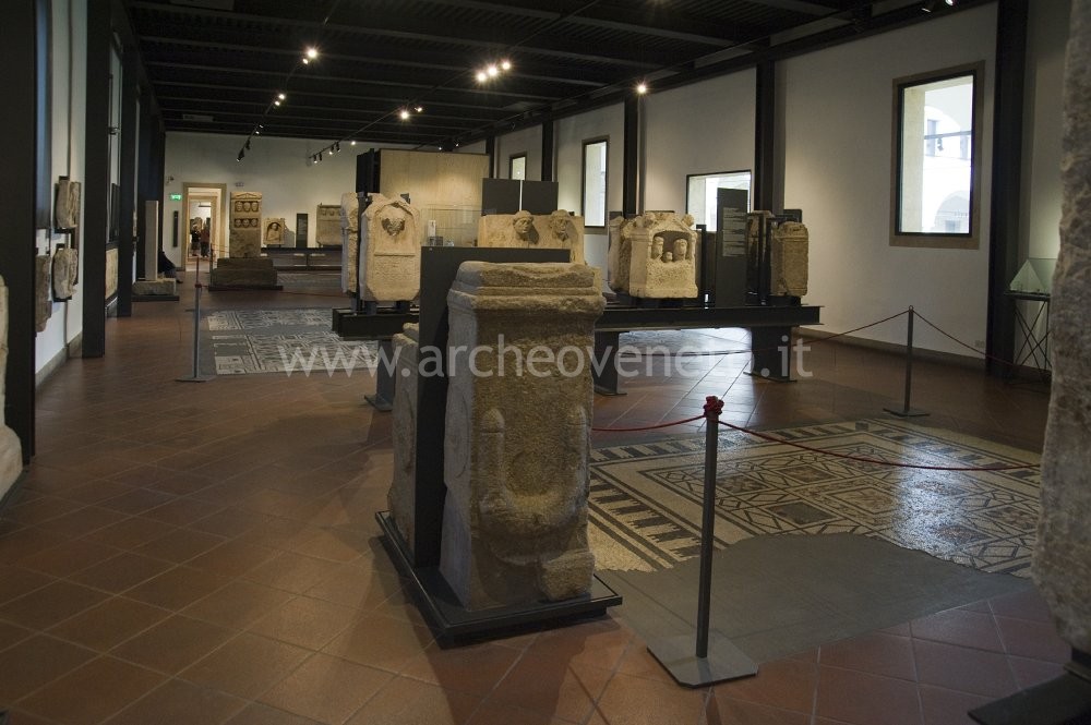 Le lastre funerarie a ritratti sono disposte lungo le pareti nord e sud della sala. Tra quelle della parete sud è bene citare la Stele degli Oppi, proveniente dalla raccolta Bassani e databile al I sec. d.C. La lapide in trachite è dotata di una nicchia a cassetta in cui sono rappresentati i quattro defunti della famiglia ricordati nella sottostante iscrizione. Particolare è anche la Stele di Maxsuma, di incerta provenienza (forse Noventa Vicentina) risalente alla prima età imperiale, per la rappresentazione della defunta a mezzo busto nella nicchia mentre regge un pomo, forse da accostare a riti e culti dionisiaci. Tra le lastre funerarie distribuite nel settore nord è d’obbligo menzionare quella dedicata al cavallo Aegyptus, che ribadisce l’importante ruolo che questo animale assunse anche nel mondo romano.