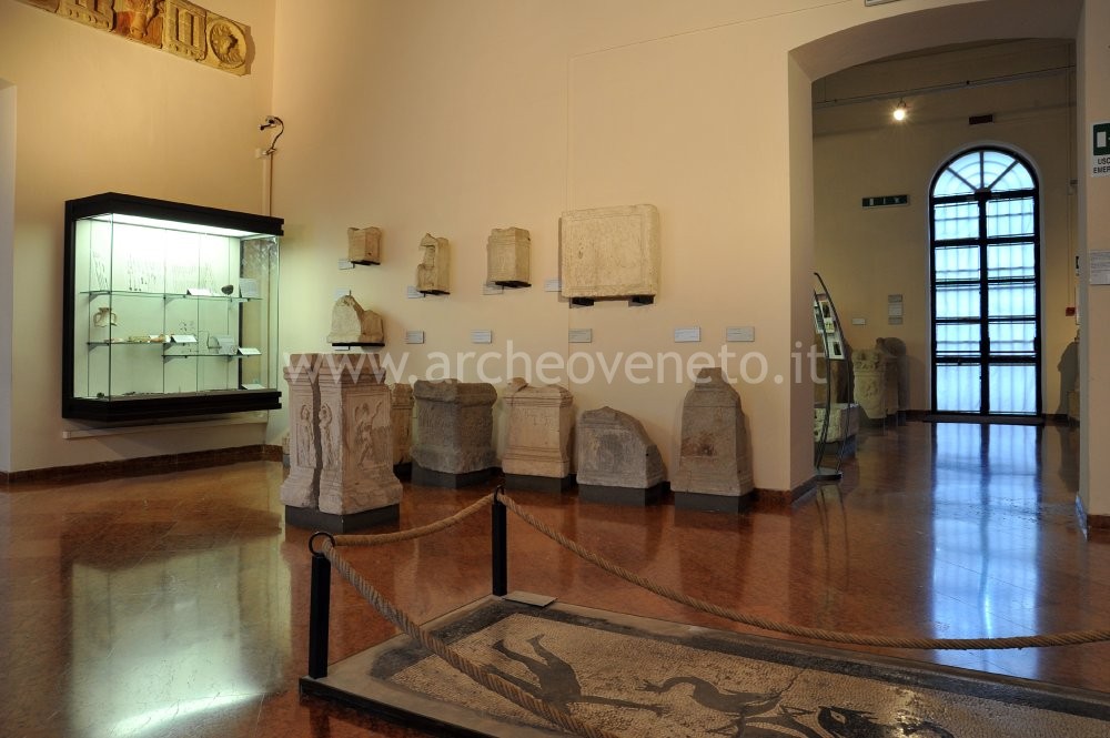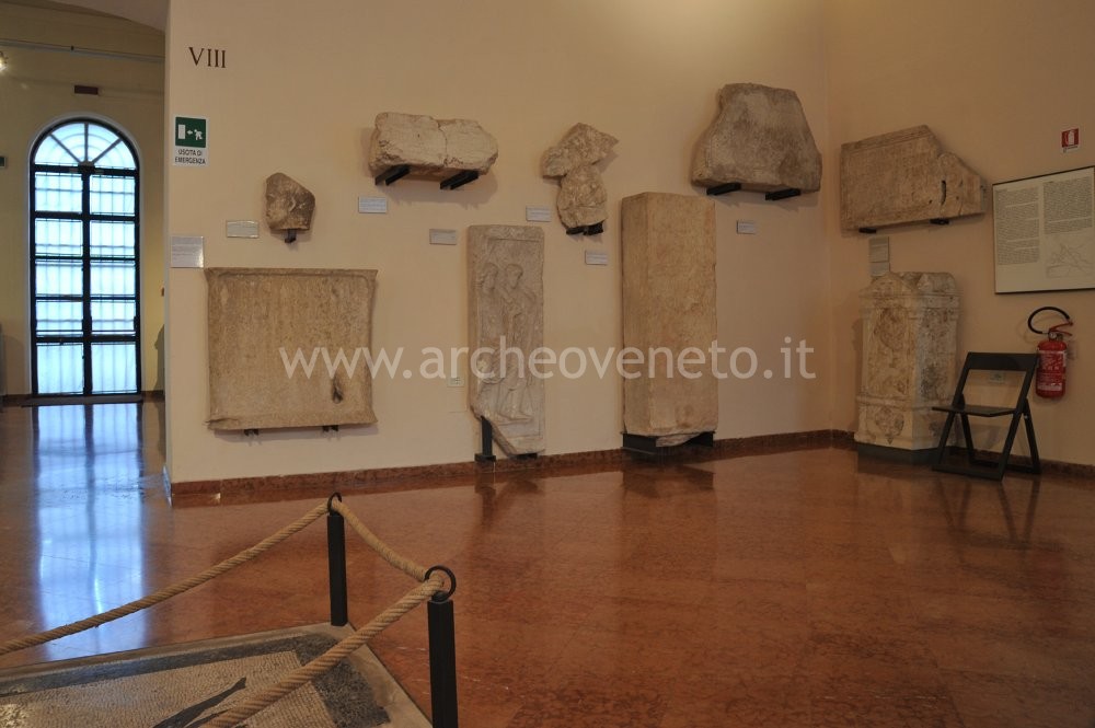 Sulla parete di fondo della sala è esposta una serie di cippi funerari in trachite con iscrizioni in lingua venetica databili tra VI e IV sec. a.C.