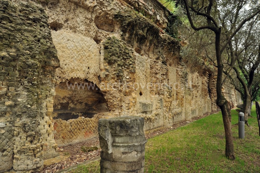 Al di là dei resti del chiostro, si elevano quattro colonne con capitelli pertinenti (resti del colonnato che concludeva in alto la cavea dell'Arena), alcuni esempi di cornici di edifici pubblici e un gruppo di monumenti funerari.