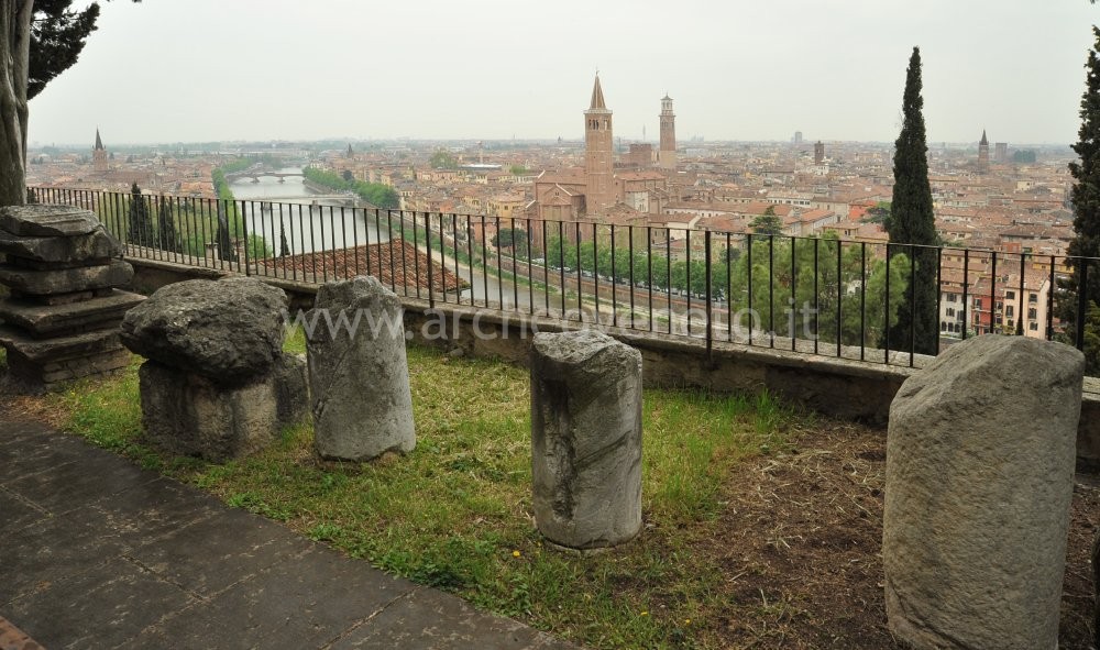 Presso la grande terrazza sono esposti materiali in marmo e pietra di età romana, provenienti da Verona e dal territorio circostante. La parete a monte di questo grande gradone artificiale è ricavata grazie ad un taglio nella roccia su cui si apre un ninfeo successivamente trasformato dai Gesuati, che costruirono su questo terrapieno un ampio chiostro, del cui portico sono visibili un paio di arcate.